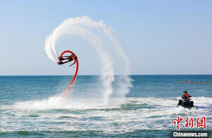 “特意带着女朋友来体验‘水上飞人’项目。”安徽游客王培森称,在空中旋转的时候,感觉自己像一条会飞的鱼,十分刺激。
