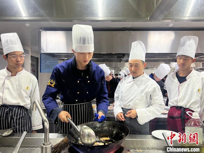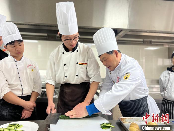 在安徽徽厨技师学院,从日本回国的徽厨方华强向学生传授做菜技艺。受访者供图