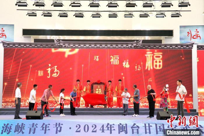7月19日,第十二届海峡青年节·2024年闽台甘国宝武术文化周在福建省宁德市屏南县开幕,两岸结对代表共同为“福”字牌匾揭牌。 中新社记者 叶茂 摄
