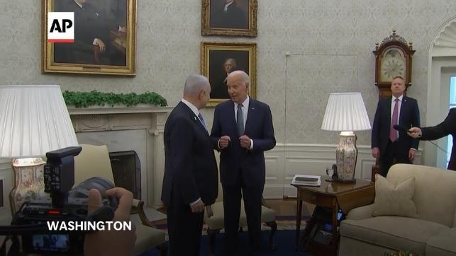中新网7月26日电 据美联社报道,当地时间7月25日,美国总统拜登和副总统哈里斯在白宫分别与以色列总理内塔尼亚胡会谈,讨论了加沙冲突及达成停火协议的可能性。