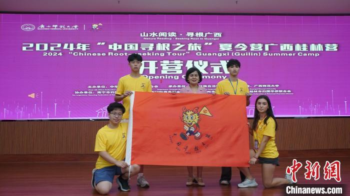 中新网桂林8月7日电(涂丽莎 欧惠兰)2024年“中国寻根之旅”夏令营广西桂林营6日在广西桂林市开营,来自美国、法国、英国、德国、西班牙、泰国的69名海外华裔青少年在8名老师的带领下,将前往桂林、贺州、南宁,体验壮乡山歌、民族舞蹈、中国武术、中国书画等具有中华文化特色的课程。