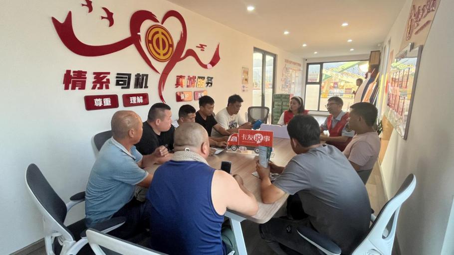 “我们有些回场晚的驾驶员赶不上饭点,停车场周边也没有可以吃饭的地方,能给解决吗?”“这里打开水太贵了,打一瓶开水大概要花三块多钱。”在“卡友说事”环节,卡友代表们纷纷反映生活上的不便和困难。