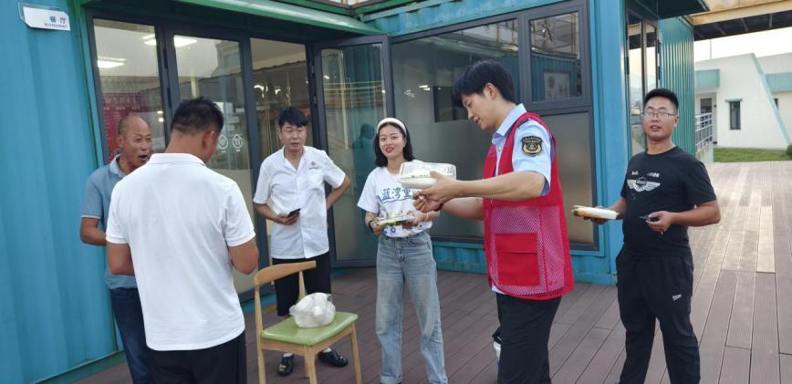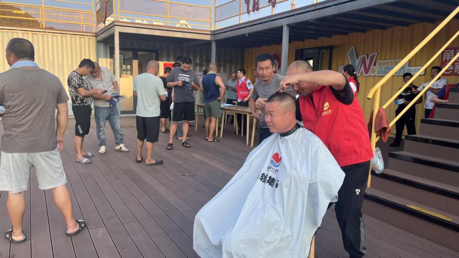 考虑停车场位置偏僻,配套生活服务设施较少,社区请来了理发师和配钥匙的师傅,现场为卡友们提供免费理发、配钥匙等服务。集运基地工会准备了三十箱饮料和几十份防暑降温礼包,分发给现场的卡友们。执法队员则现场给卡友们分发宣传资料,为卡友们讲解超限运输管理规定、跨省通办操作指南等事项,同时就卡友们关心的违章处理、掌上自助办等问题进行答疑解惑。