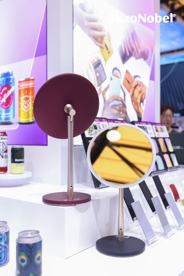 此外,展台上还可以看到根据阿克苏诺贝尔行业著名的年度色彩流行趋势,推出的四个主题流行色,引领电子消费市场的潮流。