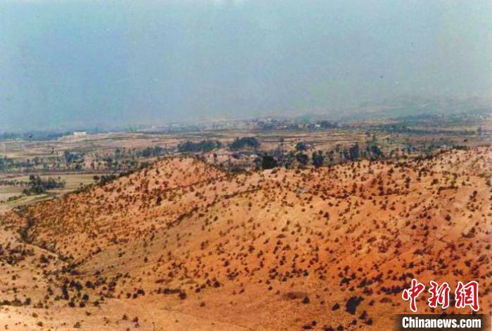 长汀县曾是中国南方红壤地区水土流失最严重的区域之一,山光岭秃,草木不存,夏天阳光直射下,地表温度可达70多摄氏度,加上土壤是红色的,也被称作“火焰山”。图为1984年的长汀河田朱溪原貌。(龙岩市委宣传部供图)
