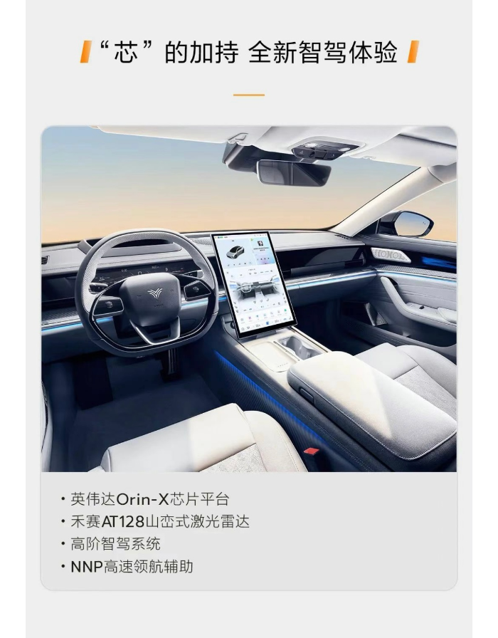 在智驾方面,哪吒S猎装搭载英伟达Orin X、禾赛AT128山峦式激光雷达、全场景自动泊车功能等高阶智驾硬件与功能。此外,车辆还搭载了ACC等行车驾驶辅助系统及7种安全预警功能,全方位保障行车安全,给用户带来轻松愉悦的驾驶体验。