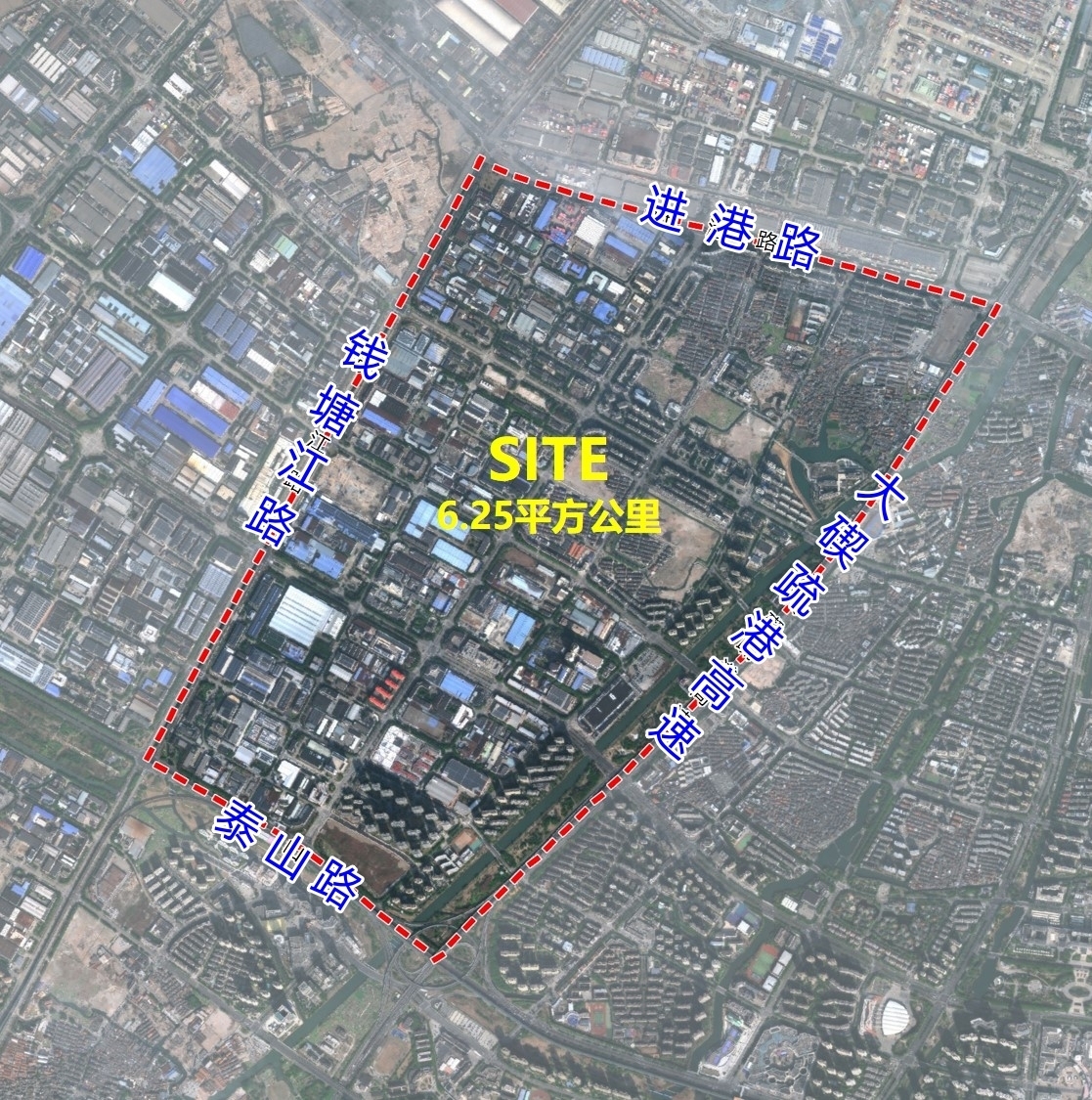规划范围北至进港路,南至泰山路,西至钱塘江路,东至大碶疏港高速,总面积约6.25平方公里。