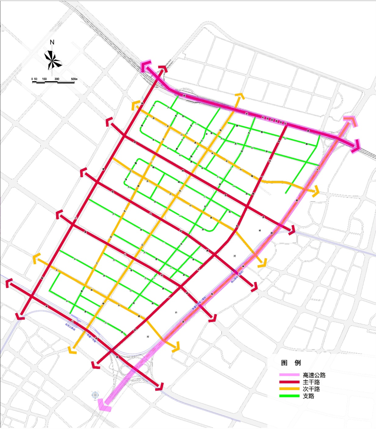 道路交通方面,规划形成“八横五纵”的路网结构。