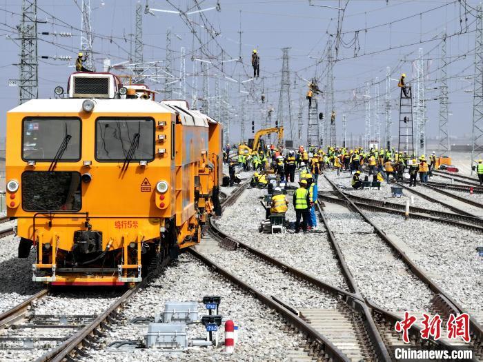 记者在格尔木南站站改工程施工现场看到,东、西岔区内大型机械和人工作业同步展开,施工现场紧张有序。