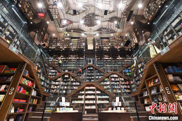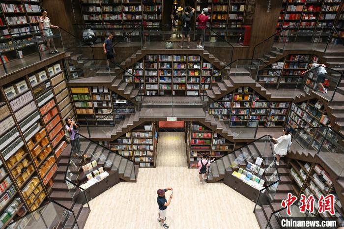 9月4日,重庆市,市民在钟书阁书店拍照留念。中新社记者 何蓬磊 摄