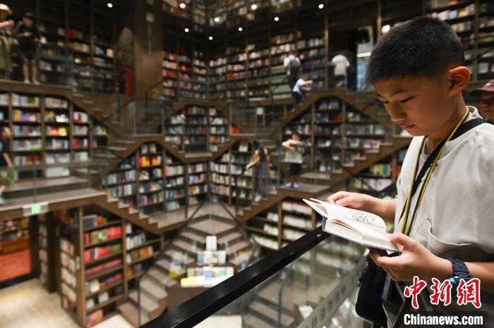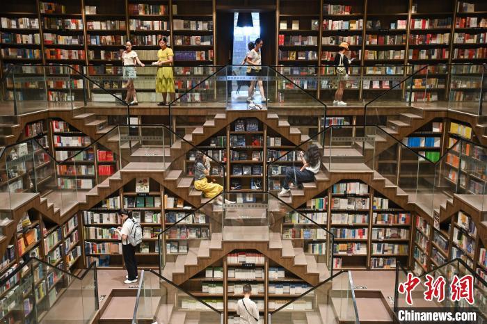 9月4日,重庆市,市民在钟书阁书店阅读。中新社记者 何蓬磊 摄