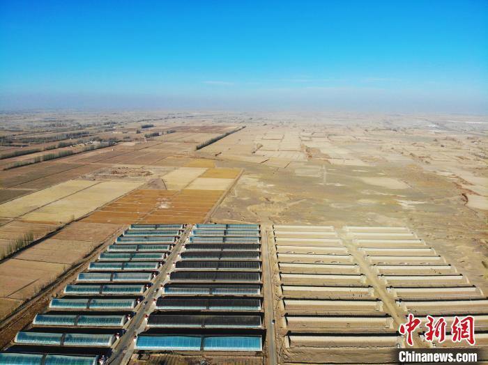 甘肃金塔开展“鱼菜共生循环及水肥一体化智控”等沙漠农业新课题研究。图为2023年12月26日航拍甘肃省酒泉市金塔县金塔镇沙漠生态农业园。(资料图)李亚龙 摄
