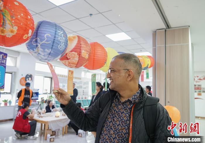 图为尼泊尔媒体考察团成员体验猜灯谜。中新社记者 马铭言 摄