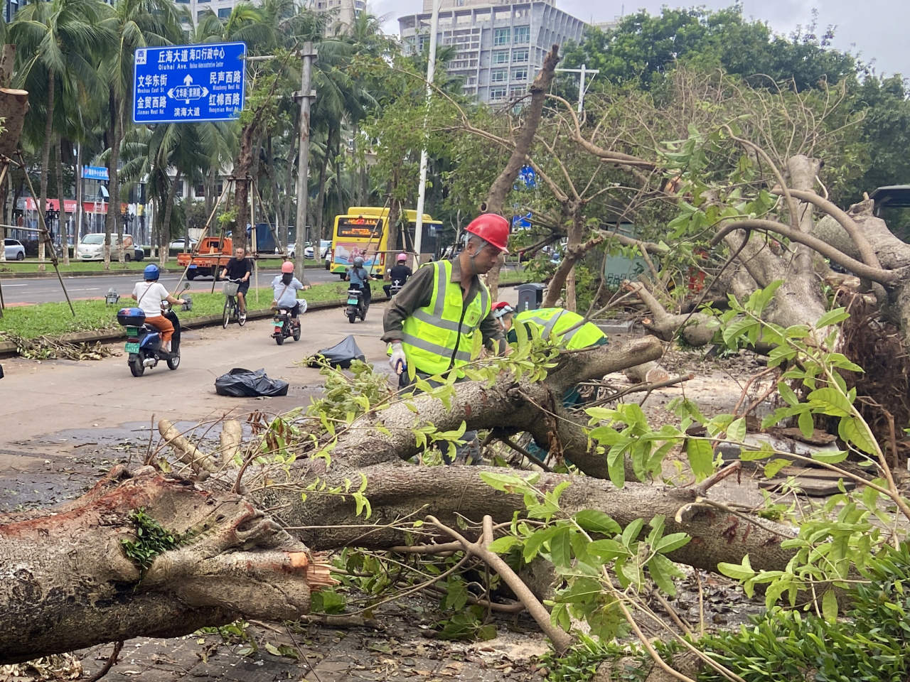 尽管电话那头带着一丝疲惫,却难掩他内心的激动,“我是第一次参加对外救援,今天主要负责处理海口市紫荆路这边的行道树扶正工作。”