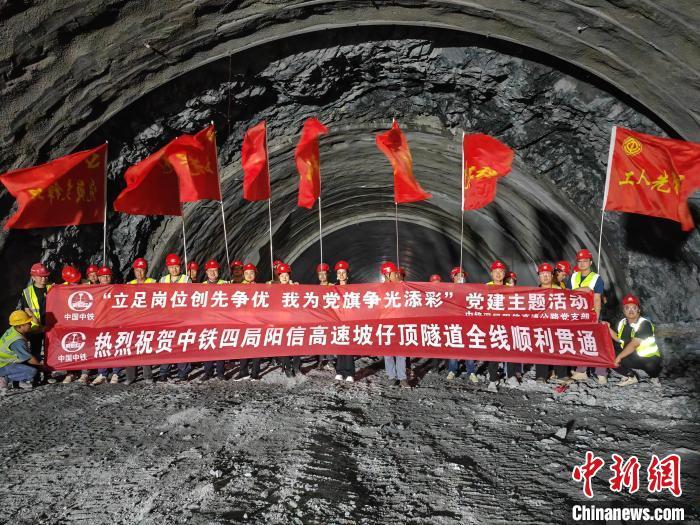 中新网阳江9月19日电 (郭军 田应元)记者19日从中铁四局获悉,由中铁南方投资建设,中铁四局、中铁五局联合施工的阳(江)信(宜)高速公路项目坡仔顶隧道18日全线顺利贯通,标志着项目建设取得突破性进展,为全线如期通车奠定坚实基础。