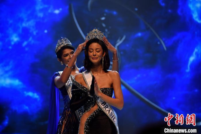 当地时间9月19日晚间,巴西圣保罗,来自伯南布哥州的25岁模特卢安娜·卡瓦尔坎特获得2024年巴西小姐比赛冠军,带上桂冠。中新社记者 林春茵 摄
