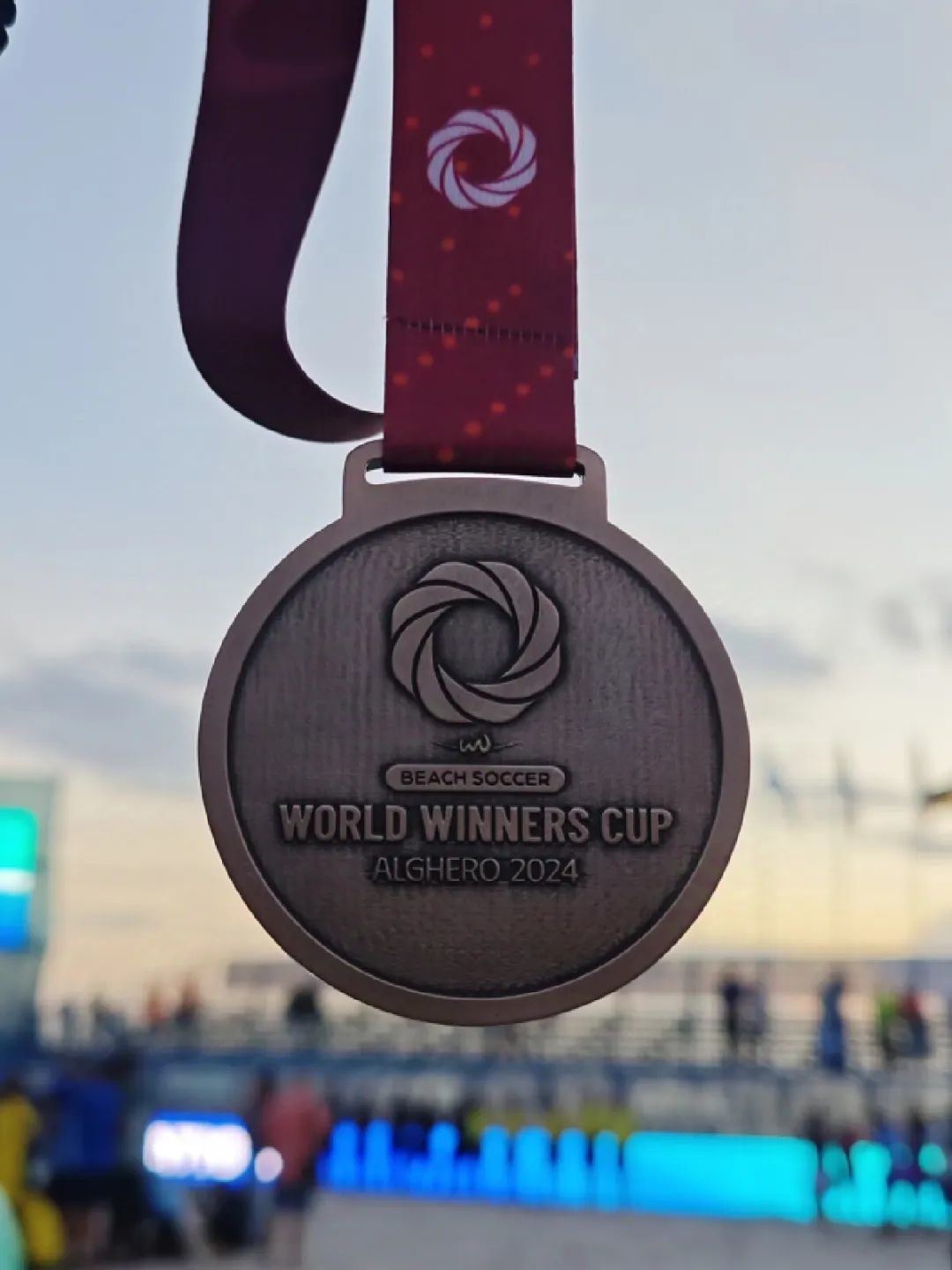北京时间9月22日晚,在意大利阿尔盖罗举行的2024世界沙滩足球俱乐部优胜者杯(简称“世俱杯”)上,来自中国的浙江宁波全讯足球俱乐部队以4:3战胜对手,收获世俱杯季军。