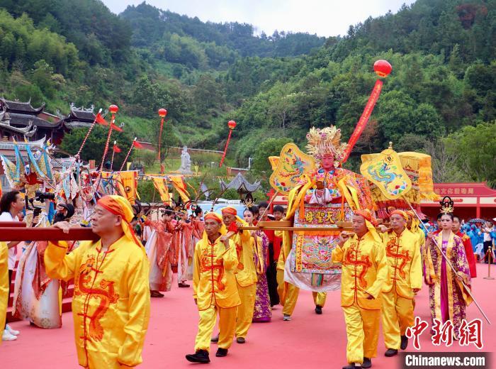中新网宁德9月26日电 (吴允杰)26日,“千年临水情 两岸一家亲”第十六届海峡论坛·陈靖姑文化活动周在位于福建省宁德市古田县的海峡两岸交流基地——古田临水宫祖庙开幕。