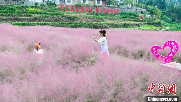 粉黛乱子草吸引游客打卡拍照。双牌县委宣传部供图
