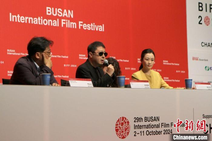 贾樟柯和赵涛出席釜山国际电影节新闻发布会。片方提供