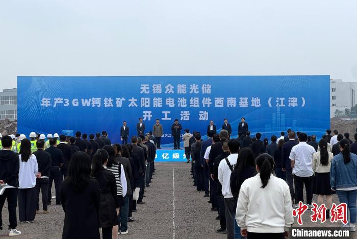 中新网重庆10月10日电(景诗雁)10日,年产3GW钙钛矿太阳能电池组件西南基地(江津)在重庆市江津区白沙工业园正式开工,作为中国西南地区最大的钙钛矿太阳能电池生产基地,将助力当地打造千亿级新能源光伏产业园。