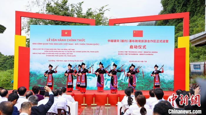 中新社崇左10月15日电 (记者 黄艳梅)中国广西壮族自治区人民政府、越南高平省人民委员会15日联合举行中越德天(板约)瀑布跨境旅游合作区正式运营启动仪式。