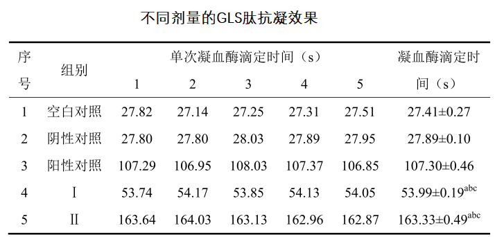 GLS肽作为溶栓产品除了具有显著的溶栓作用,还具有显著的抗凝效果。