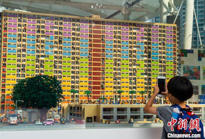图为市民参观由乐高积木搭建的“彩虹邨”公共住宅模型。中新网记者 侯宇 摄