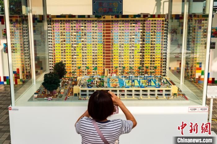 图为市民拍摄由乐高积木搭建的“彩虹邨”公共住宅模型。中新网记者 侯宇 摄
