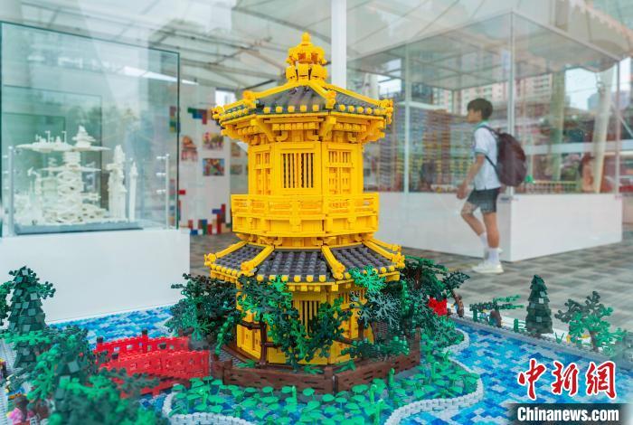 图为由乐高积木搭建的南莲园池模型。中新网记者 侯宇 摄