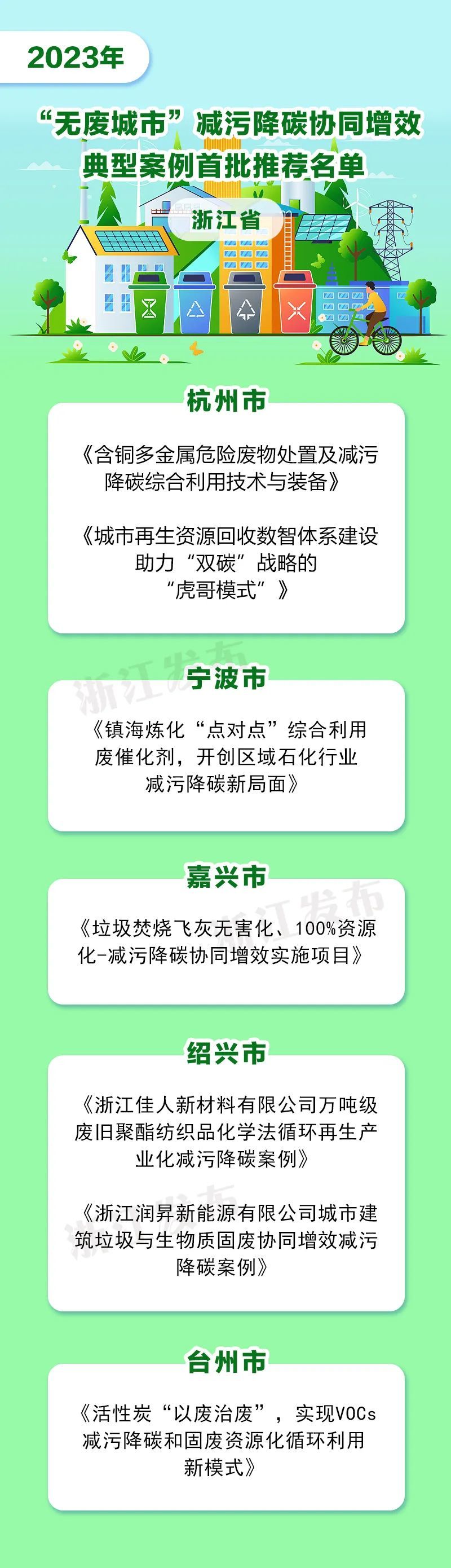近日,巴塞尔公约亚太区域中心公布2023年“无废城市”减污降碳协同增效典型案例首批推荐名单,全国总共36个案例上榜,其中,浙江7个项目入选。