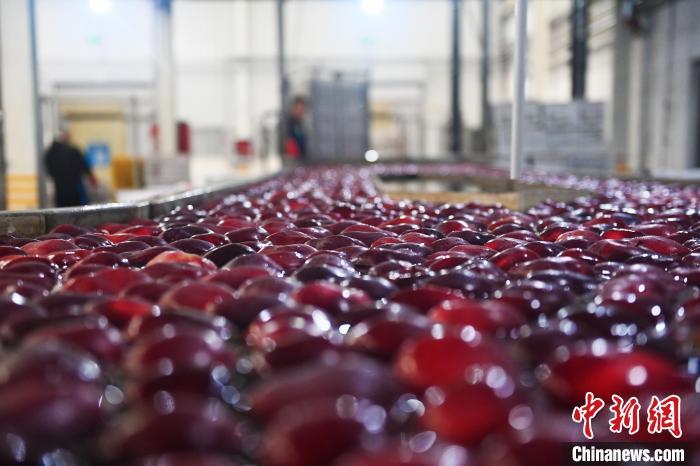连日来,从事30多年苹果生意的秦安县雪原果品有限公司负责人蔡全斌忙得不可开交,加工车间内苹果自动化分拣线昼夜不歇,车间外运输苹果的大货车往来不绝。