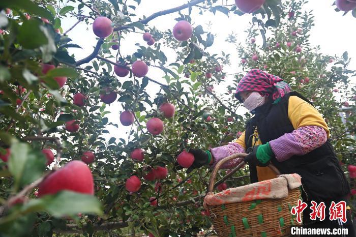 10月21日,在甘肃省天水市秦安县一果园内,果农进行苹果采收工作。李亚龙 摄