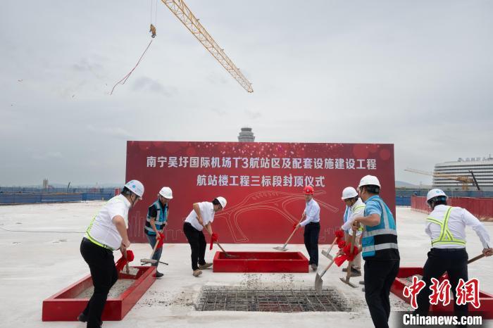 中新网南宁10月28日电 (熊嘉玲)27日,由中建八局广西分公司承建的南宁吴圩国际机场T3航站楼三标段项目主体结构全面封顶,为后续建设工作顺利开展奠定坚实基础。