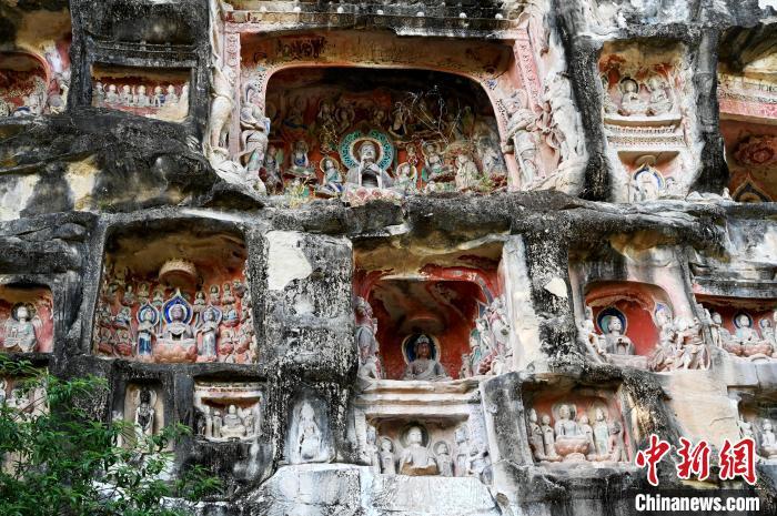 图为南龛摩崖造像一角。中新社记者 安源 摄