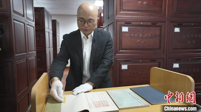 胡海荣介绍文澜阁本《四库全书》。 浙江省文化广电和旅游厅供图