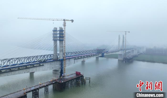 中新网上海11月16日电 (谢梦圆)16日,记者从中国铁路上海局集团有限公司获悉,当日上午9点整,淮宿蚌城际铁路淮河特大桥主跨成功合龙,标志着淮河最大跨度铁路桥以主跨248米“雄姿”成功跨越淮河,淮宿蚌城际铁路建设取得重要进展。