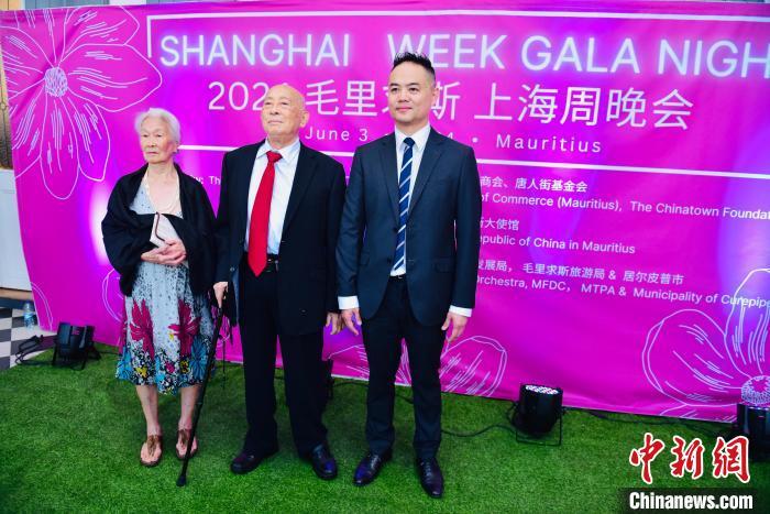 2024年6月,曾繁兴(中)和林海岩(右)在毛里求斯上海周晚会上合影。(受访者供图)