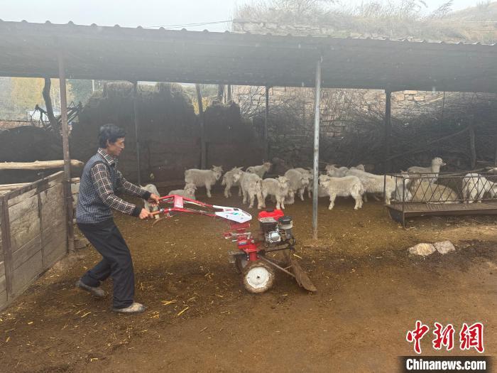 11月17日,养殖大户贾义生正在清理自己的羊场。 中新社记者 杨静 摄