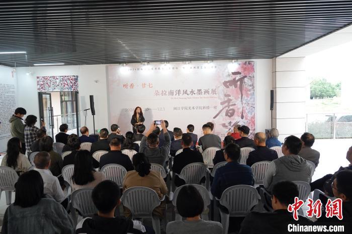 中新网福州11月20日电 (记者 闫旭)“听香·廿七——朵拉南洋风水墨画展”20日在位于福建福州的闽江学院美术学院开幕。此次画展是2024国际工艺美术教育院长论坛暨亚洲漆艺交流项目之一,展出马来西亚著名华裔作家、画家朵拉精心创作的南洋风水墨画作品。