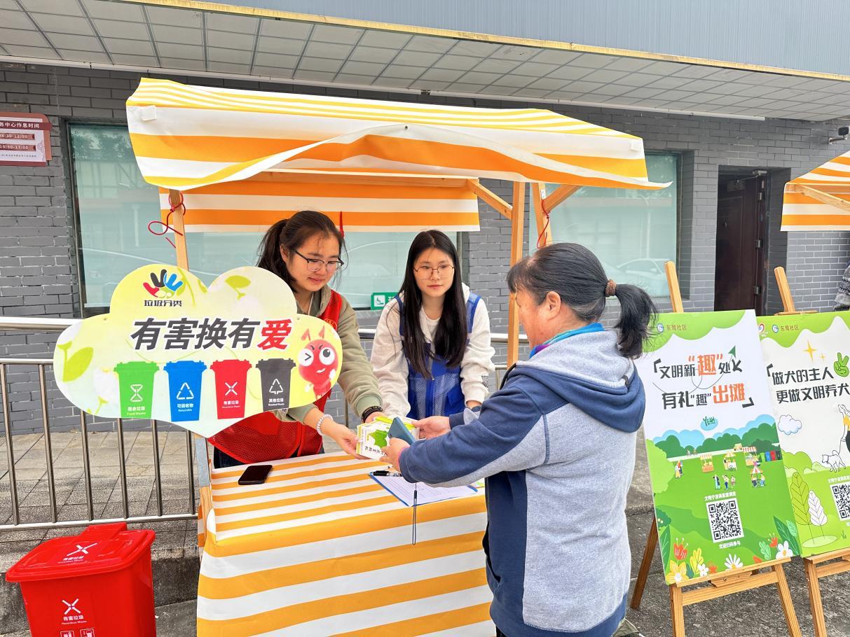 “我成为志愿者的初衷,就是想向身边的朋友和家人传达更多的平安建设、垃圾分类、文明养犬等内容,这次有机会参与到社区里的宣传活动中,我也十分荣幸。这次活动不仅展示了我们大学生的社会担当,也让我感受到服务他人的志愿力量。”大学志愿者陈同学边兑换边感慨道。
