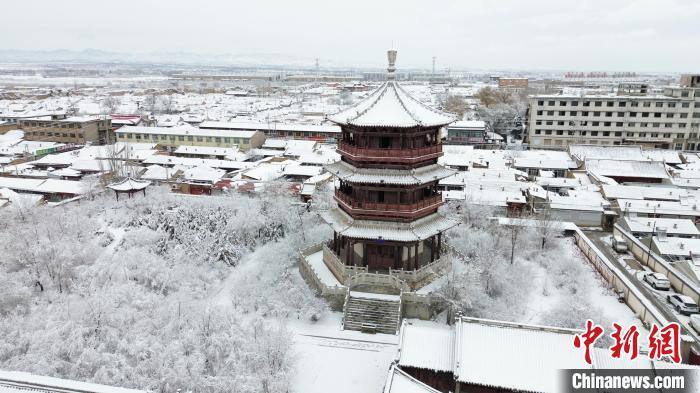 图为11月25日,航拍蔚州署魁星楼雪景。(无人机照片)门兰城 摄