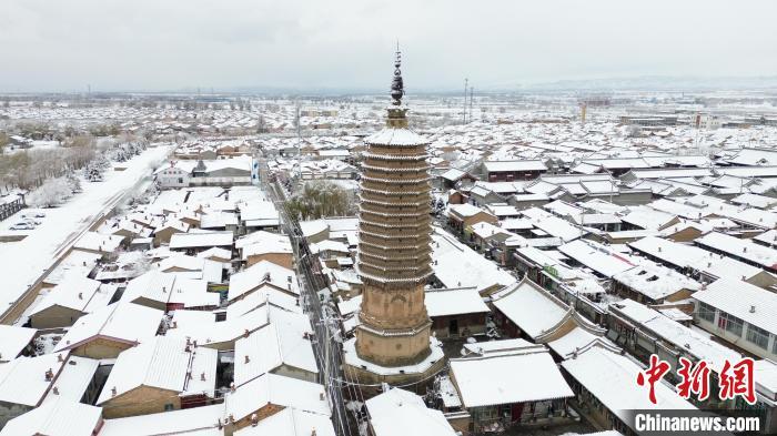 图为11月25日,航拍蔚县南安寺塔雪景。(无人机照片)门兰城 摄