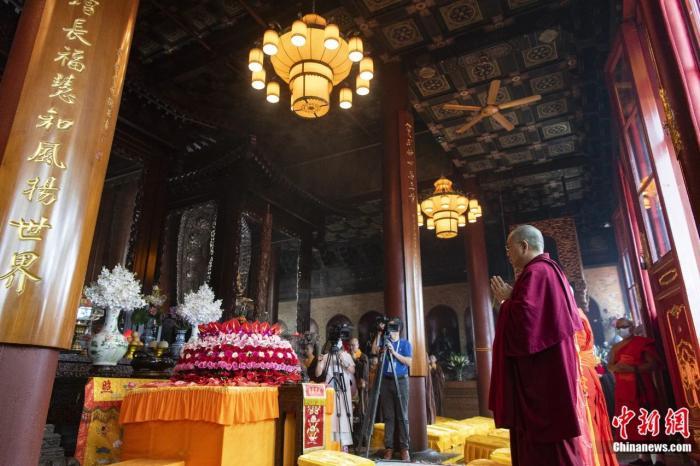 2021年5月19日,中国佛教协会在北京广济寺举办佛诞节庆祝活动。来自中国汉传、南传、藏传三大语系佛教界代表人士共庆佛诞。中新社记者 侯宇 摄