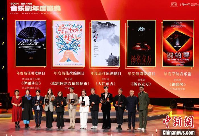 中新网北京11月29日电 (记者 应妮)日前在京举行的2024北京·天桥音乐剧年度盛典颁出21项年度最佳荣誉。其中,演员宗俊涛与丁臻滢分获“年度最佳男演员”“年度最佳女演员”。音乐剧《大江东去》《扬名立万》《钢的琴》分获“年度最佳原创剧目”“年度最期待剧目”“年度学院音乐剧”。