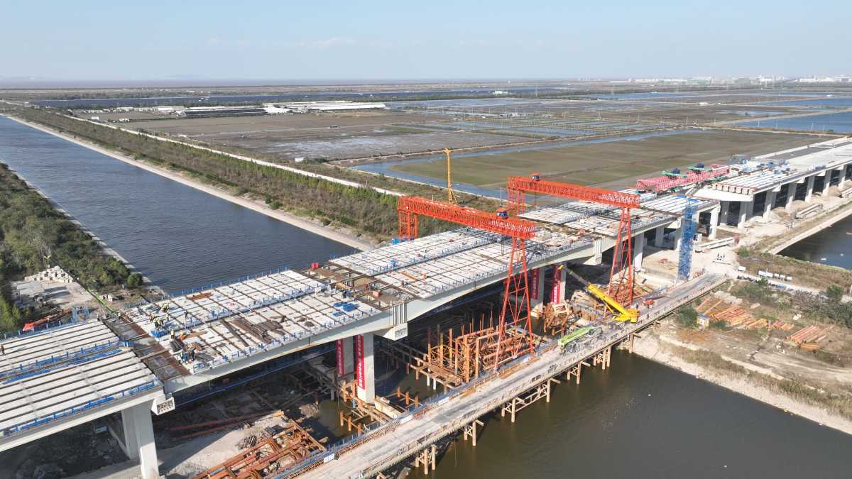 杭甬高速复线宁波段二期全线梁板架设完成。