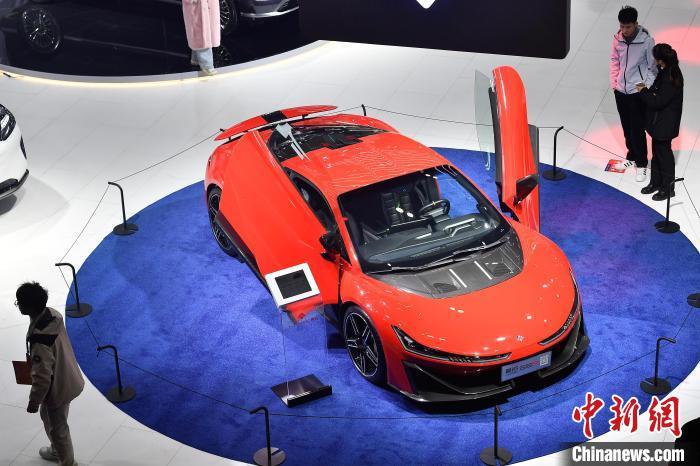 图为新能源跑车吸引市民驻足。中新社记者 杨华峰 摄