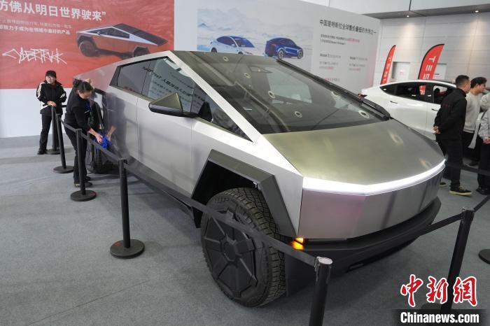 图为工作人员正在擦拭特斯拉汽车。中新社记者 杨华峰 摄