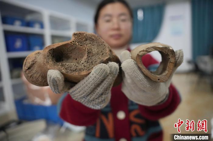 据中国人民大学历史学院考古文博系从事科技考古研究的吴晓桐介绍,这次发现的牛、羊、马、猪等动物骨骼,很多有切割、打磨、钻孔的加工痕迹,属于骨器半成品,推测这些骨骼被用来制作骨器。