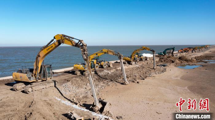 12月15日,黄骅港30万吨原油码头全面开工建设,施工机械进行作业。 付秀智 摄